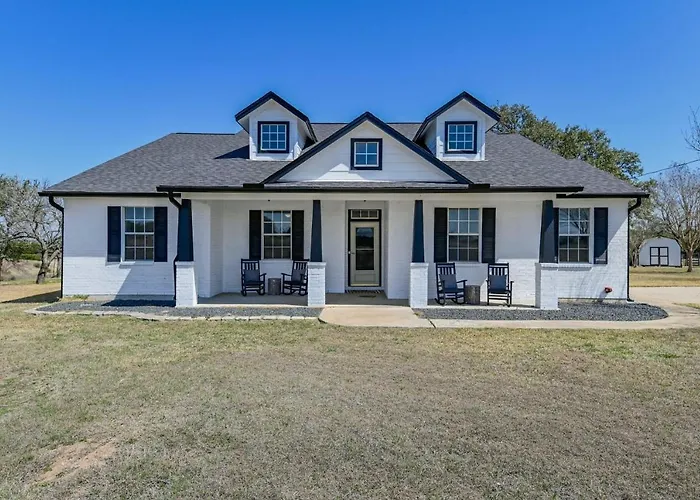 Welcome to the serene haven of Oak Hollow, a premier destination in Liberty Hill that is both charming and conveniently located. Nestled approximately 60 kilometers from Killeen-Fort Hood Regional Airport, the property offers guests a seamless arrival with effortless access to the region's vibrant attractions. This tranquil retreat melds natural beauty with modern amenities, making it ideal for both relaxation and adventure.